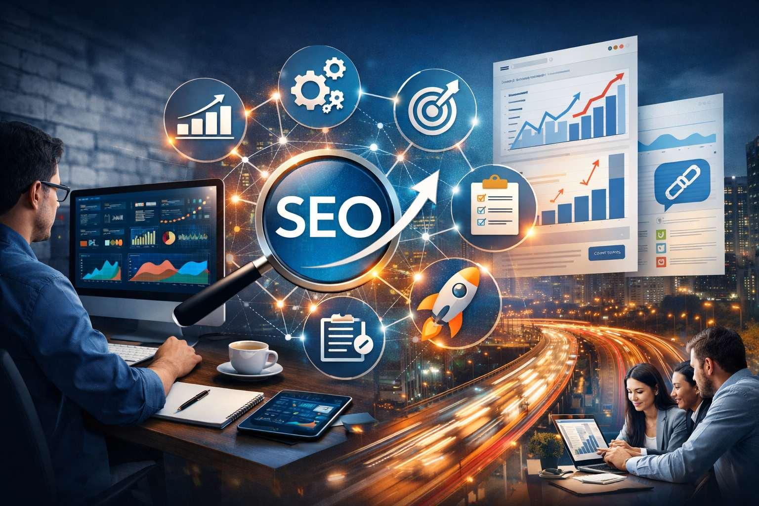 The main goal of SEO services is to enhance your online visibility. When you hire professionals for SEO, your chances of ranking higher in search engine pages (SERPs) increase. High ranking leads to more organic traffic, which in turn increases leads and brings in new customers. An SEO company uses advanced on-page and off-page optimization strategies to improve your website's visibility. They offer comprehensive services, including creating high-quality content and building authoritative backlinks, to ensure your website ranks higher in a competitive market.