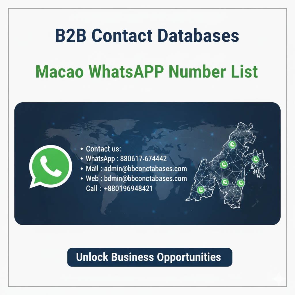 Doing business in the digital age is more competitive than ever. Therefore, it is very important to communicate with the right people at the right time. Reliable contact data is essential, especially if you want to enter the international market. To meet this need, B2B Contact Databases has come up with their special category Macao WhatsApp Number List. Macao is a special administrative region, which is known as an important trade and tourism center in Asia. Here, hotels, tourism, gaming, real estate, import-export and various service sectors are rapidly developing. Therefore, communicating directly with businessmen in this region can open the door to new possibilities for your organization. #MacaoWhatsAppNumberList #MacaoWhatsAppContacts #MacaoMobileNumbers #MacaoBusinessContacts #MacaoB2BLeads #MacaoWhatsAppMarketing #MacaoPhoneDatabase #MacaoLeadGeneration #MacaoCustomerList #MacaoWhatsAppDirectory Buy now: https://b2bcontactdatabases.com/contact-database/macao-whatsapp-number-list/ Contact Us_ Telegram User Name: QuestionsLive Get In Touch. ✔ Our Web Site: B2B Contact Databases More contact details are provided on our website....